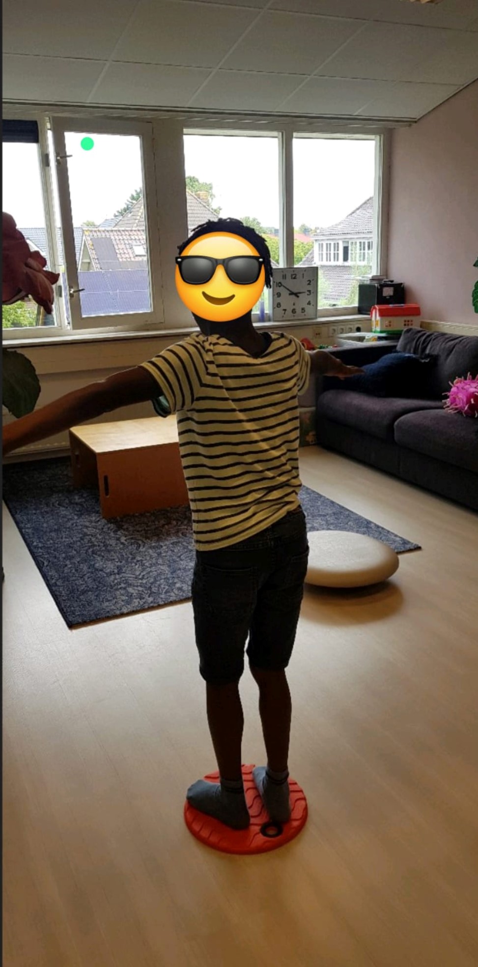 Zichtbaar is dat het jou aan evenwicht ontbreekt. De tien tellen stilstaan op dit matje red je niet. Je komt tot drie. Dan is het alweer klaar. Alles in jou